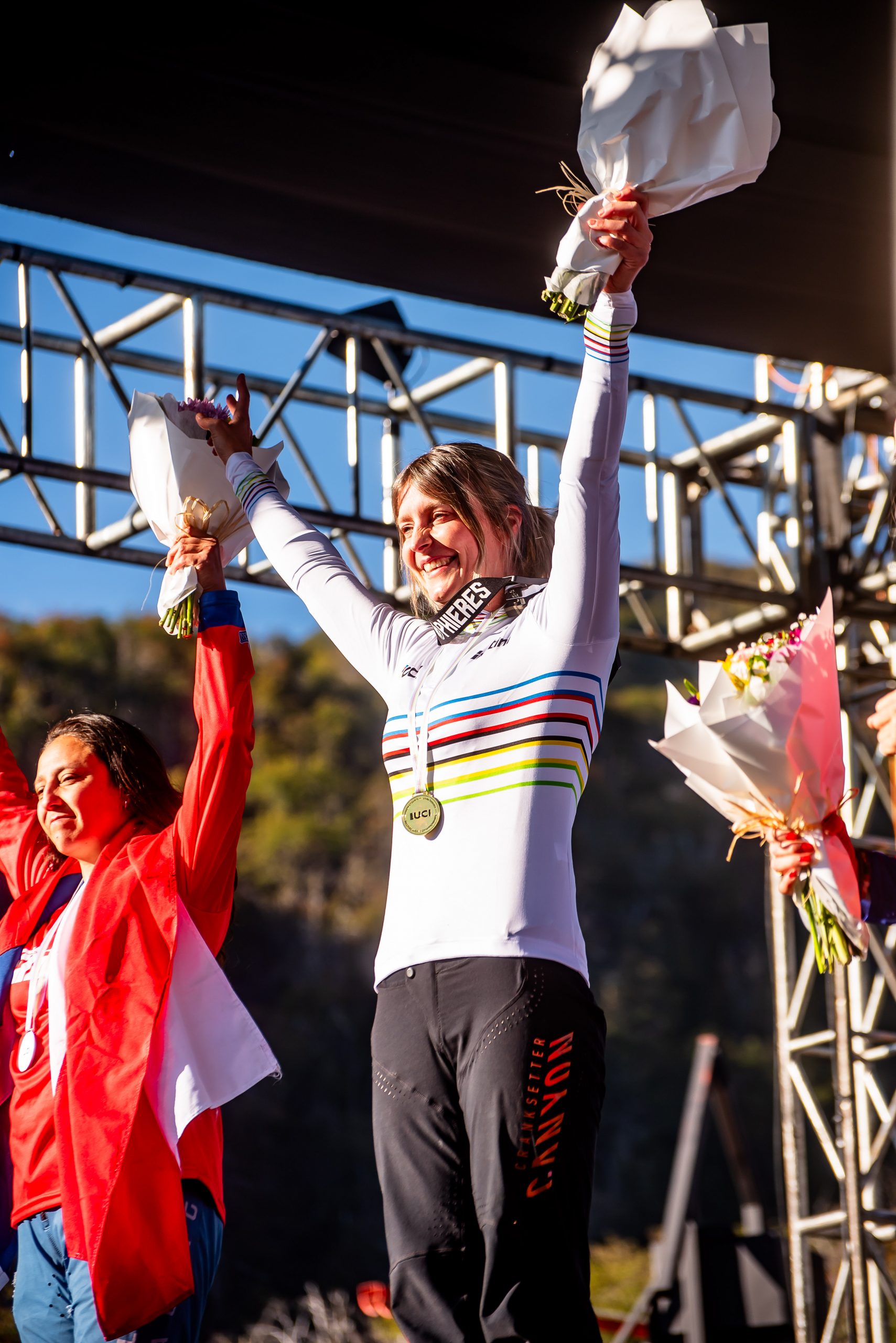 From there, everything shifted. I trained harder than ever, in the gym and on the bike, always with one clear goal in mind: becoming World Champion. Along the way, I was incredibly lucky to have amazing support — Canyon, Hunt Wheels, Pedro’s, Iriedaily, Phieres, Maxxis, and GoPro believed in me. I also had a strong team around me: a mental coach, a breath coach, and my physio Marcel, who kept me going no matter what.